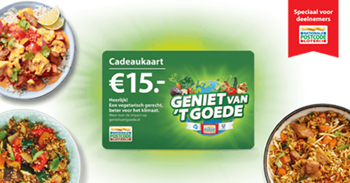 Lever Uw geactiveerde cadeaukaart in bij de Voedselbank Hart van Drenthe, Zeilmakerstraat 10 in Assen en doneer 15 euro aan de Voedselbank.